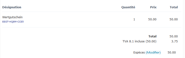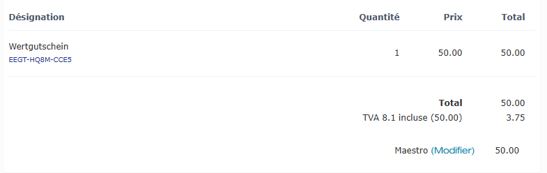 La nouvelle méthode de paiement est visible dans les détails du bon cadeau.