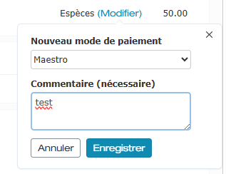 - Entrez la nouvelle mode de paiement et pourquoi vous désirez la modifier puis cliquez sur Enregistrer.